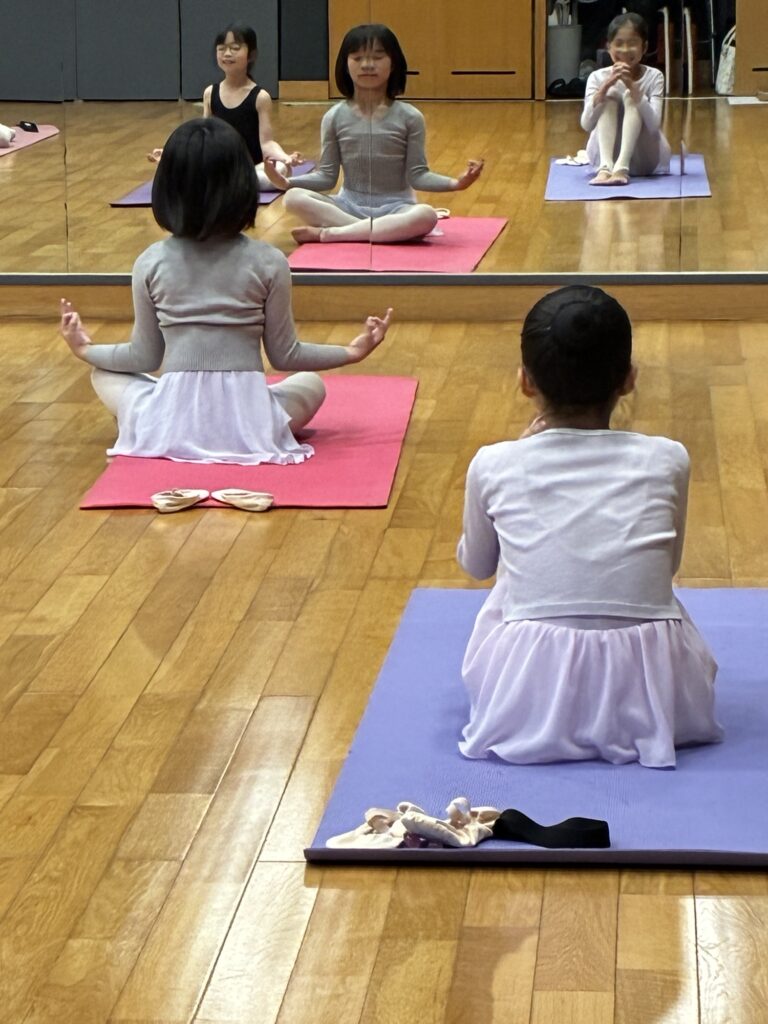 ジュニアC(今は3年生のみ)レッスン前、あまりに元気良く騒がしいので「精神統一せよ!」と司令をくだす。