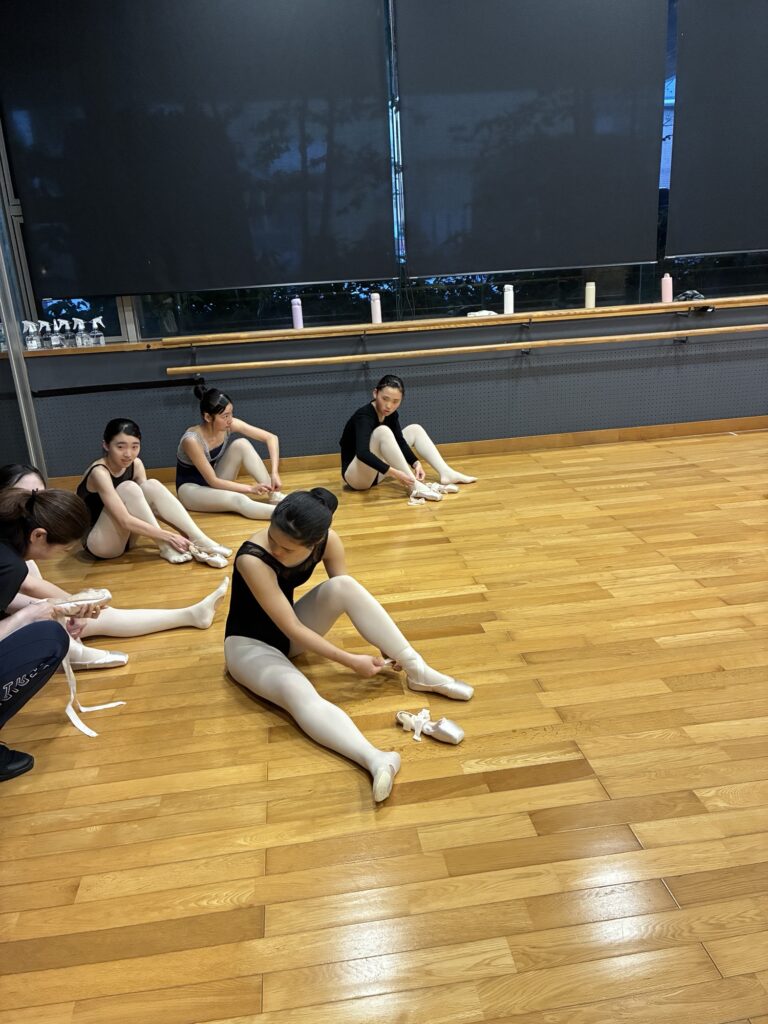 ジュニア土曜クラスのポアントレッスンの様子です♪